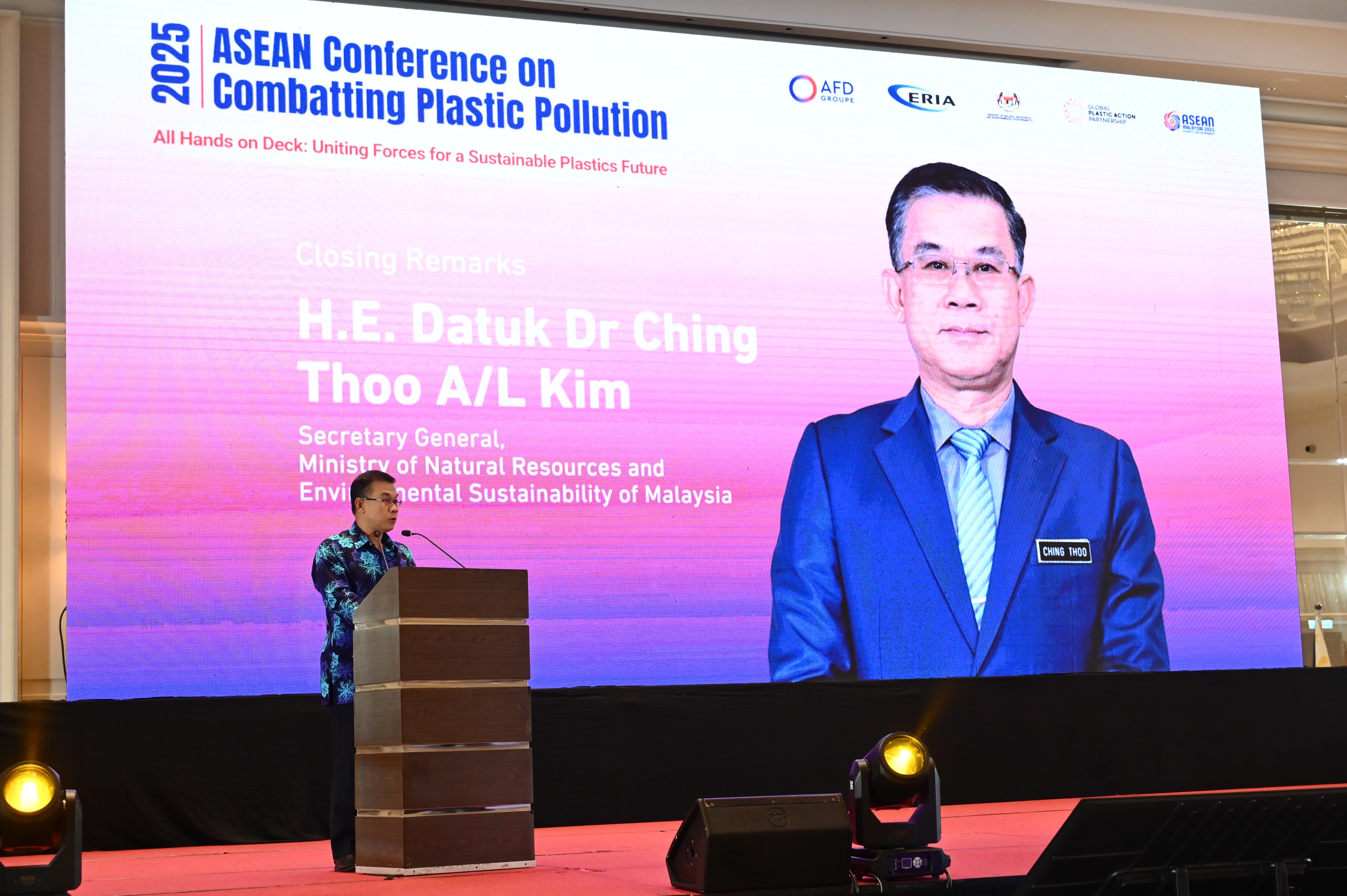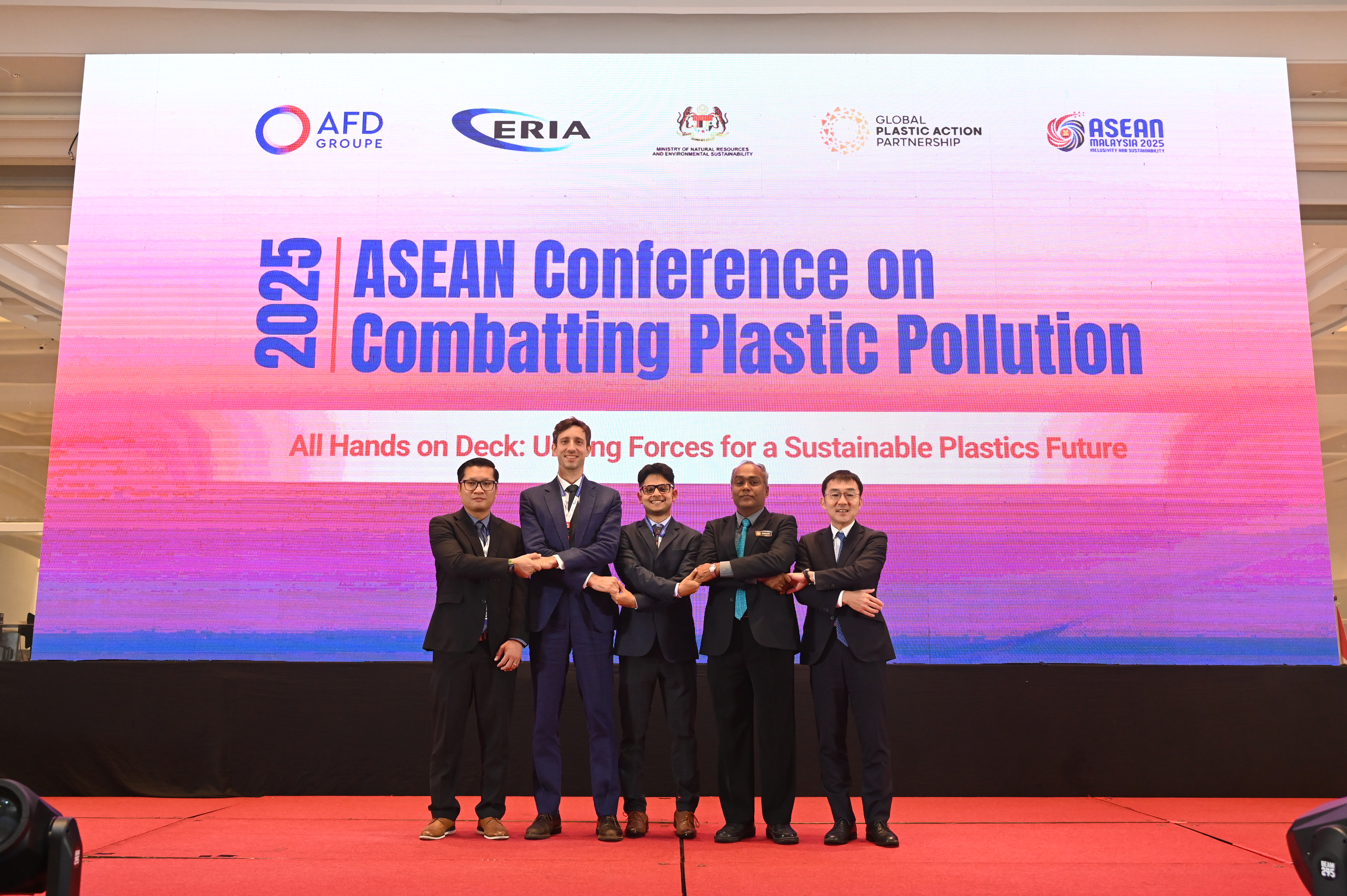 Kuala Lumpur, 14 October 2025: ERIA hosted the ASEAN Conference on Combatting Plastic Pollution (ACCPP) 2025 at the Mandarin Oriental, Kuala Lumpur. The event was co-hosted by Malaysia’s Ministry of Natural Resources and Environmental Sustainability (NRES) and supported by Agence Française de Développement (AFD) and the Global Plastic Action Partnership (GPAP) of the World Economic Forum, in collaboration with the Institute for Global Environmental Strategies (IGES) and the Institute of Oceanography and Environment (INOS) of Universiti Malaysia Terengganu (UMT).