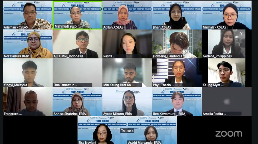 Virtual, 29 August 2025: To showcase the power of digital storytelling and regional solidarity, ERIA’s Regional Knowledge Centre for Marine Plastic Debris, together with the Center for Southeast Asian Studies (CSEAS), brought together youth from across ASEAN. The online event was organised to announce the winners of the Youth Short Video Challenge and Youth Speech Challenge, which had run concurrently since April 2025.
